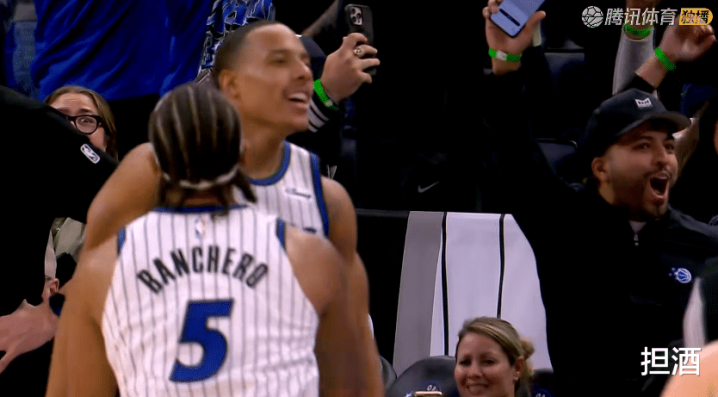 比赛结束,班凯罗冲上去一把抱住贝恩,魔术其他球员都冲了过来,大家将本恩摁在地上一通疯狂庆祝。